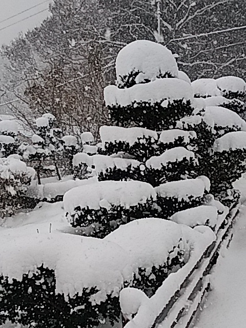 2018-12-09 雪かき 作業 第1回目の雪かき終了 今、陽がさしてきて雪もやんだ。 花壇(雪) 昨日雪を払ってあげてもこんな状況。 朝窓を開けようとしたら凍っていて開かないので其の儘、本日帰ります(笑) 一晩中ストーブを点けてあったので凍ったみたいです。 終了 松はほおって置いても平気だけどモミジ類の枝が折れてしまうのが悲しい。 去年の雪で禿が出来てしまった。雪囲いの準備をしたのだけど先に雪が積ってしまう。 あぁ・・・悲しや 物置の屋根 物置に雪が・・土台が腐っていて耐えられるかなぁ・・・ 来週もこなきゃいけないだろうなぁ・・・屋根の雪は落ちるだろう