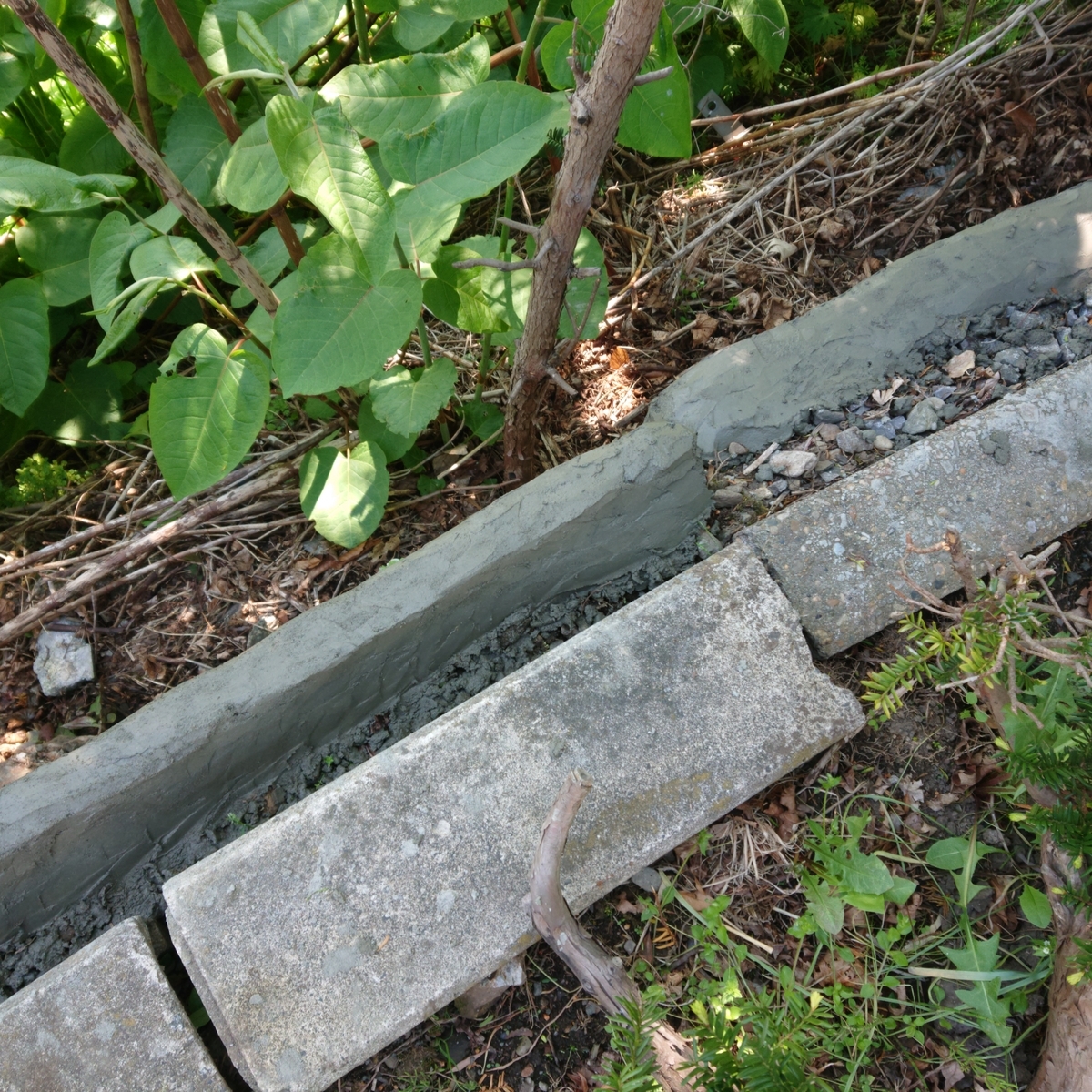 2019-05-13 補修した 昨日休養を取り気力が戻った。 天気も晴れ。 さぁやるぞ! 前の持ち主が設置したU字構。 最初どうなっているのか分からなかったのだが、市から買い取って土を入れてその際に嵩上げしたみたい? U 字構を塀の上に置いてあった。 気が付いたのが最近で、塀の化粧コンクリートが剥がれ落ちているのを見ていて気が付く。 限界に近い状態なんだけどなんとかもう少し待っておくれと願いを込めて補修をしてみた。 最近の補修モルタルは素晴らしいわぁ。