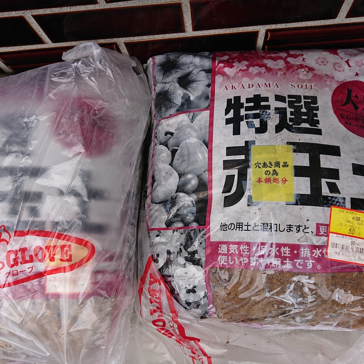 ホームセンターを覗くと袋が破れたので半額の値札を発見した。