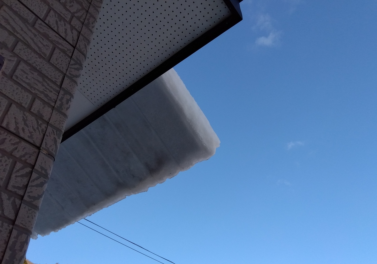 うちの屋根勾配が緩やかなのか中々落ちない。ヨクヨク観察していると隣の敷地に落ちないようにしている訳のようだがお陰で2階は寒いしこの状態で雪が降ると下側が氷になる。。