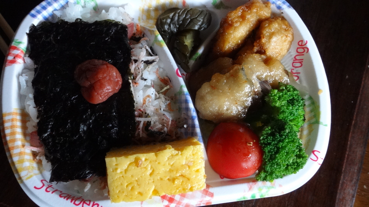 新幹線の中でお昼になるので買うか持っていくかで悩んで詰めて行きました。