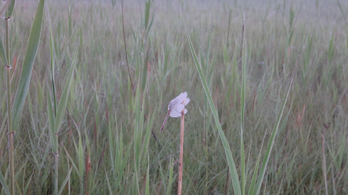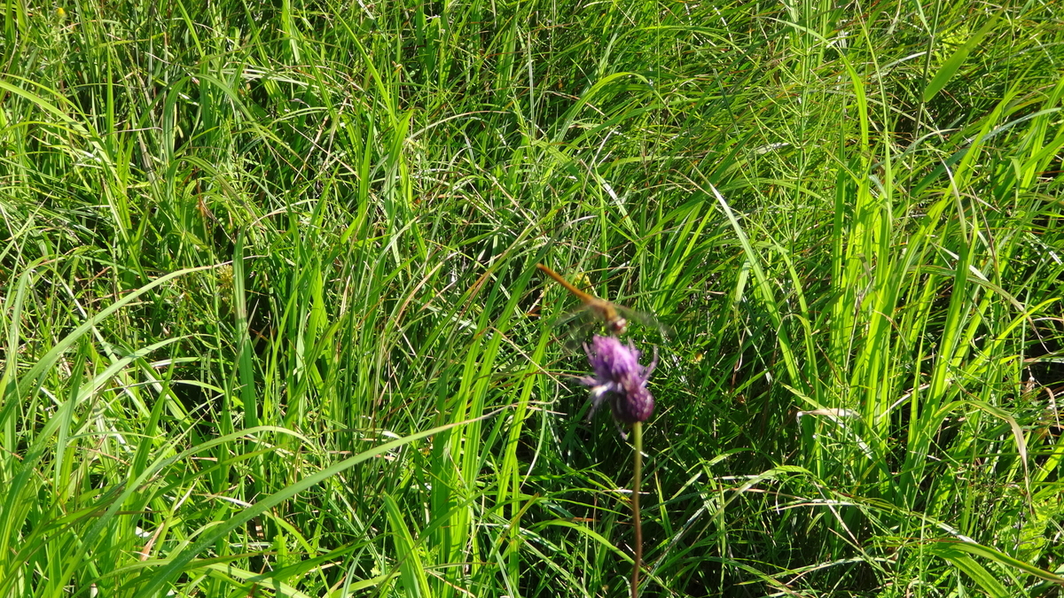 陽が昇るに従いまた飛び立つ。トンボの寿命はどのくらいなんだろ。