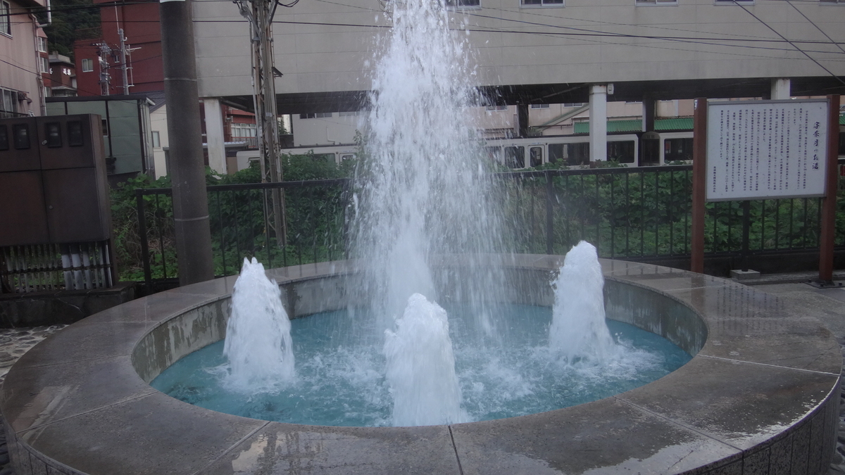 駅前にある噴水が温泉という事でトロッコ電車に乗った後、手を入れた(生き返る)