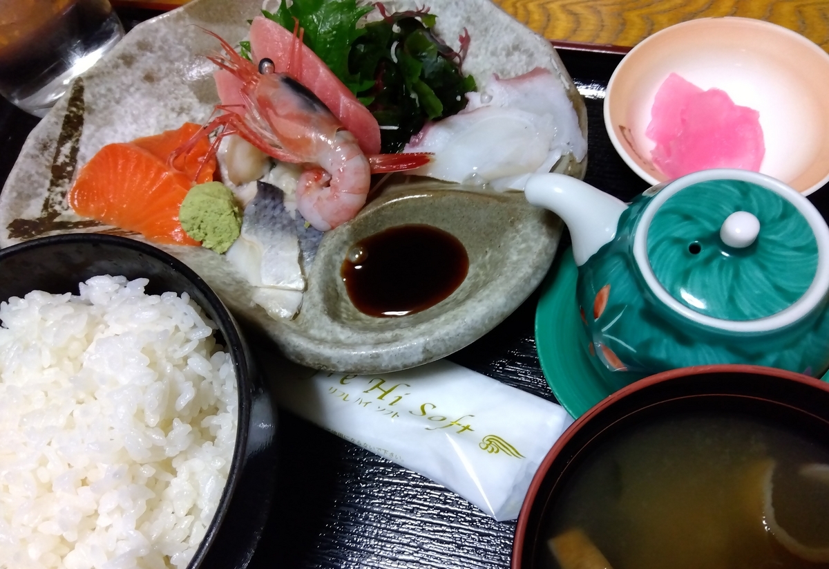 部屋で食べれるというのでこれは幸運で刺身も思ったよりも美味しかった。ご飯が多かったので半分にして食べたんだけど途中半分にしたご飯に醤油をかけ食べた(アァ)。